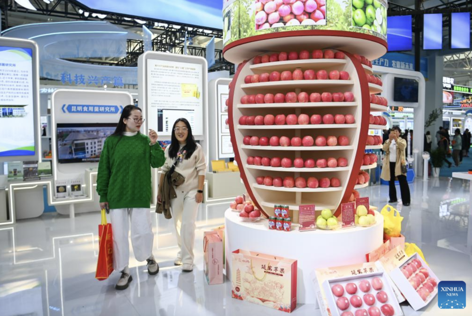 Çin’in kuzeybatısındaki Shaanxi Eyaleti’nin Yangling kentinde düzenlenen 31. Çin Yangling Tarımsal Yüksek Teknoloji Fuarı’nda Tacikistan’dan gelen tarım ürünlerinin sergilendiği standı ziyaret edenler, 25 Ekim 2024. Tarımsal yüksek teknoloji alanındaki yeniliklerin sergilendiği 31. Çin Yangling Tarımsal Yüksek Teknoloji Fuarı Cuma günü burada başladı. Fuar 29 Ekim’e kadar sürecek.